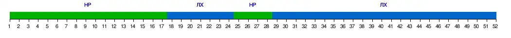 | 44 | Mercedes | 19-24, 29-52 | 30 |