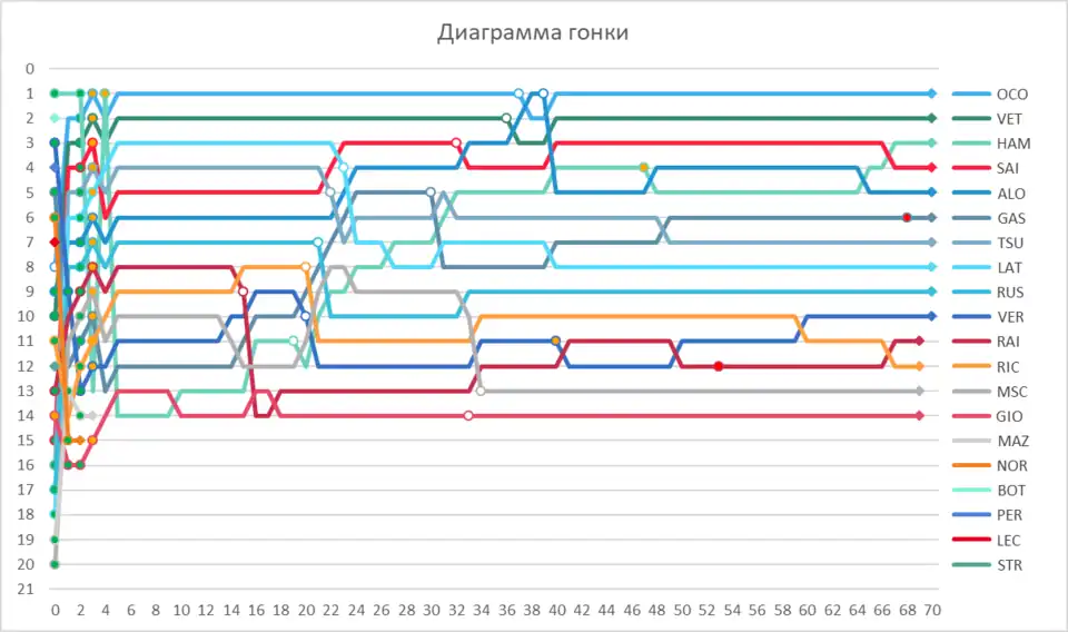 Гонку, впервые в своей карьере, выиграл Эстебан Окон (предыдущая первая победа — Серхио Перес, Гран-при Сахира 2020 года; следующая первая победа — Карлос Сайнс-младший, Гран-при Великобритании 2022 года). Вторым стал Льюис Хэмилтон, третьим финишировал Карлос Сайнс на Ferrari[3].