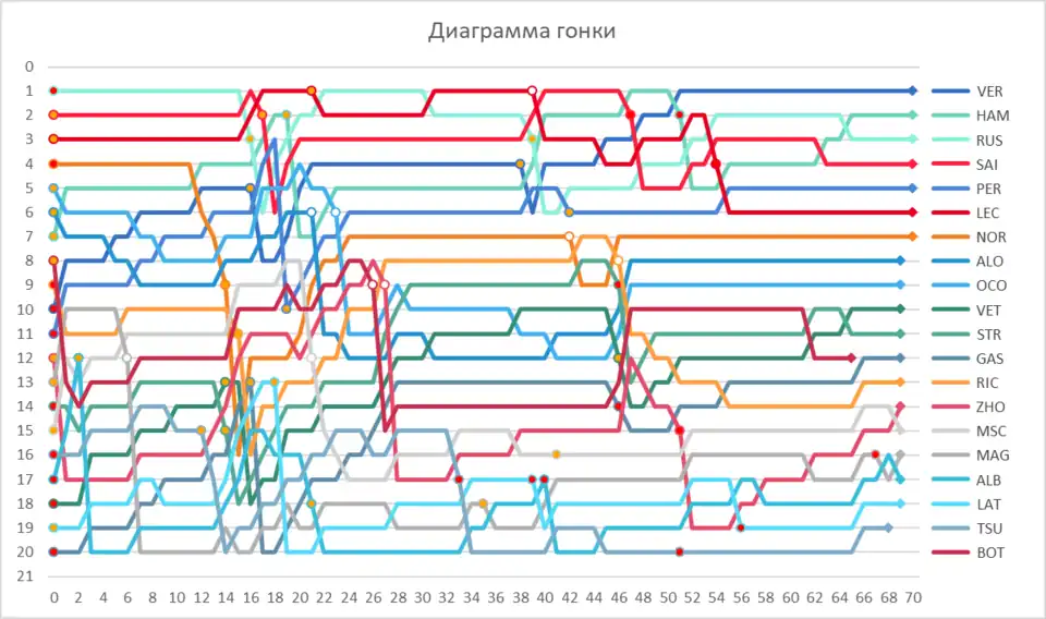 | 12 | ПЛ | ▲8 | 10 | AlphaTauri-RBPT | P | 69 | +1 круг | 181,116 | 2 | SMS | ||
