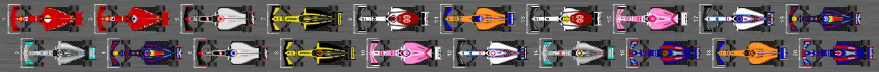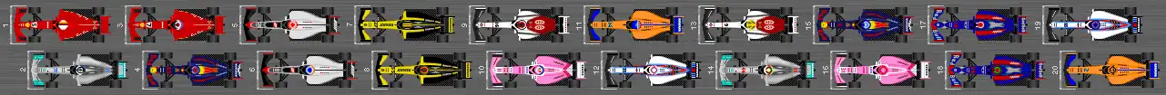 | Место | № | Гонщик | Конструктор | Квалификация | Старт | ||