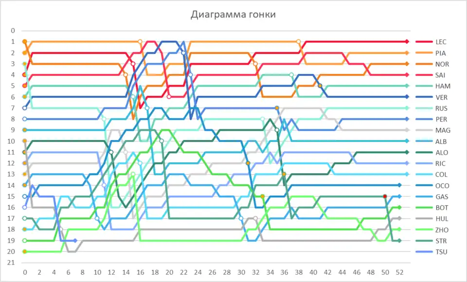 В гонке победил Шарль Леклер из команды Ferrari, вторым финишировал Оскар Пиастри из McLaren, третьим — Ландо Норрис.