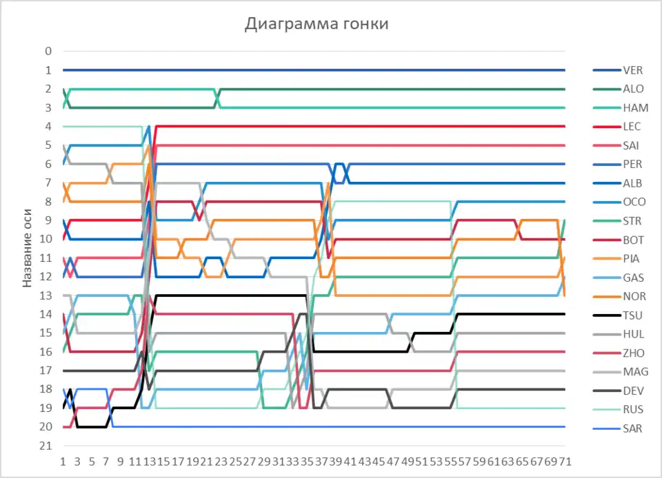 | 17 | 13 | ▼4 | 20 | Haas-Ferrari | P | 69 | +1 круг | 189,761 | 2 | HMM | ||