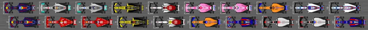 - ↑ – Пьер Гасли получил 20-местный штраф в сетке: 15 мест за превышение квоты элементов силового агрегата, 5 мест за незапланированную смену коробки передач.