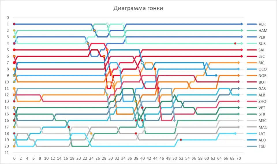 | 9 | 8 | ▼1 | 4 | McLaren-Mercedes | P | 70 | +1 круг | 181,972 | 1 | MH | 2 | |
