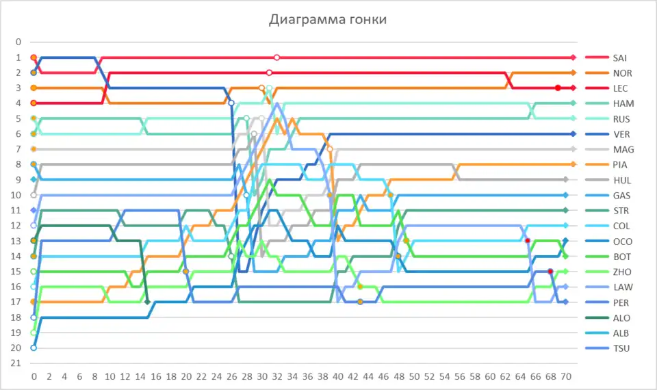 Быстрый круг был установлен Шарлем Леклером на последнем круге гонки[4].