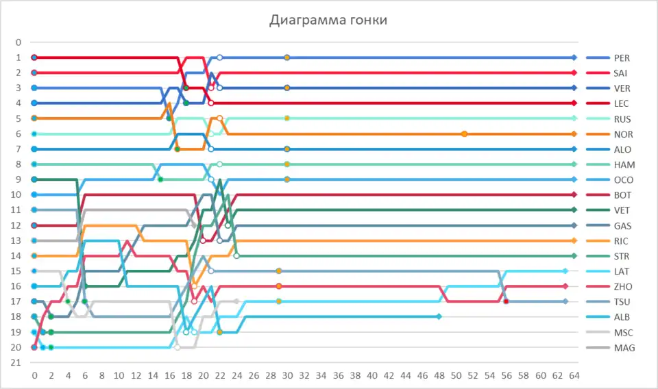 Гонку выиграл Серхио Перес на Red Bull, вторым финишировал Карлос Сайнс (мл.) на Ferrari, третьим — Макс Ферстаппен на Red Bull.