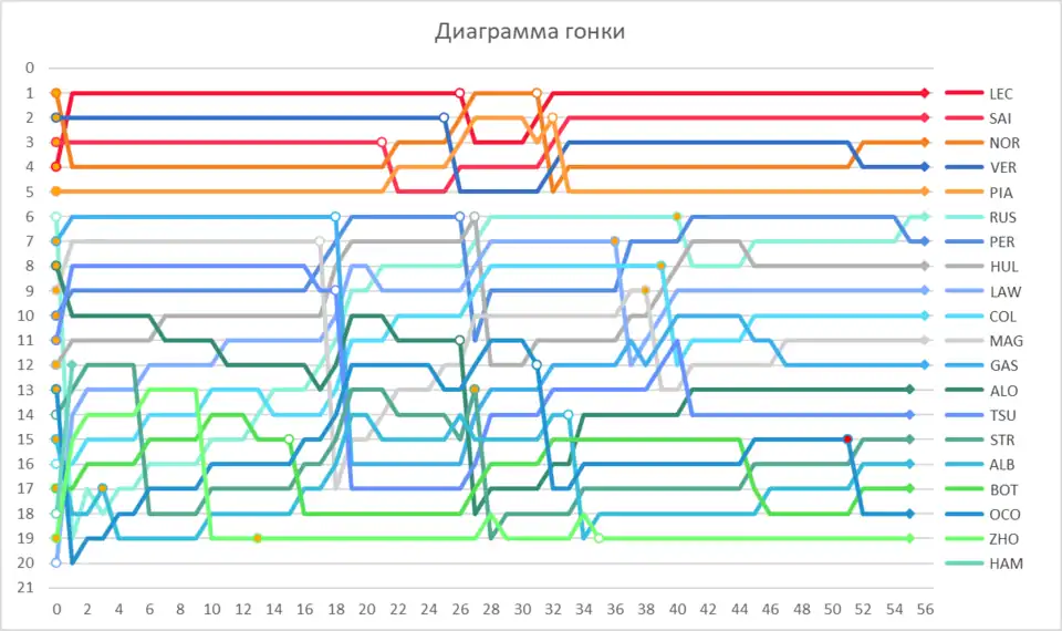 | 1 | 4 | ▲3 | 16 | Ferrari | P | 56 | 1:35:09,639 | 194,453 | 1 | MH | 25 | |