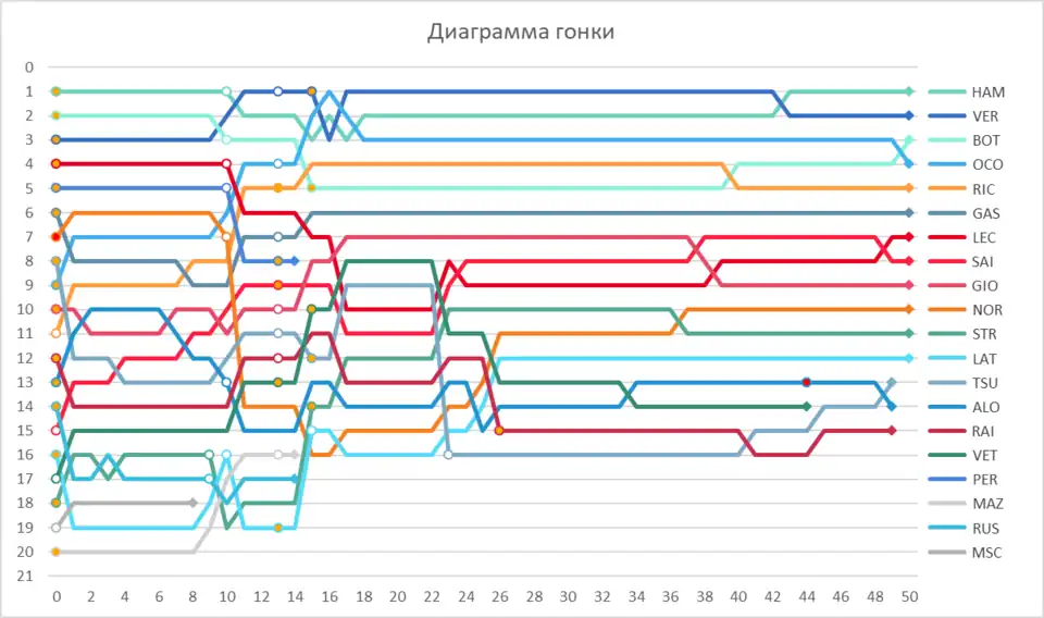 Победу также одержал Хэмилтон, он же установил лучший круг гонки. Вторым стал Макс Ферстаппен на Red Bull, третьим — Валттери Боттас.