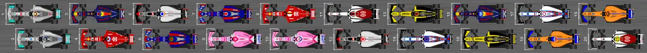 - ↑ – Маркус Эрикссон получил 15-местный штраф: 10 мест за замену силового агрегата и 5 мест за незапланированную смену коробки передач.