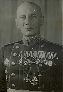 - три ордена Красного Знамени (14.06.1940[7], 03.11.1944[5][8], 24.06.1948[5])