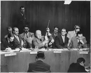 - ↑ Кошель П. А. СССР. Внешняя политика в 1945—1985 гг.: Начало «Холодной войны» // Большая школьная энциклопедия. — М.: ОЛМА-ПРЕСС, 2005. — Т. 2. Гуманитарные науки. — С. 540. — 702 с. — 15 тыс. экз. — ISBN 5-224-03215-6.