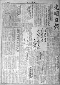 Начала выходить в Бэйпине 16 июня 1949 года как орган Демократической лиги Китая; её предшественником была печатавшаяся Демократической лигой в Гонконге с 1941 года «Гуанмин бао». С 1953 года стала предоставлять свои страницы и авторам из других демократических партий КНР.