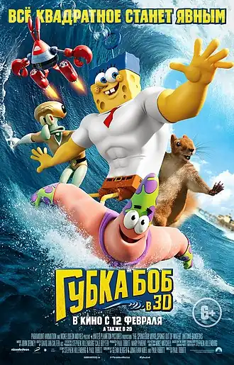 «Гу́бка Боб в 3D» (англ. The SpongeBob Movie: Sponge Out of Water, дословно — «Губка Боб в кино: Губка из воды») — американский анимационный фильм, созданный по мотивам мультсериала «Губка Боб Квадратные Штаны» режиссёра Пола Тиббита. Фильм совмещает игру живых актёров, компьютерную и рисованную анимацию. Данный фильм не является сиквелом фильма 2004 года «Губка Боб Квадратные Штаны», как многие ошибочно считают, а является приквелом[5]. В России фильм вышел в прокат 12 февраля 2015 года. Посвящён памяти Эрнеста Боргнайна.