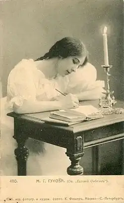 Из всех Татьян, которых я слышал, самой близкой к пушкинской героине я считаю Гукову. В её голосе была особая теплота и какая-то глубина. <…> Татьяна Гуковой была действительно русской девушкой, простой и трогательной, наивной и умной, глубоко переживающей и отдающейся всецело без колебаний охватившему её первому чувству. Ужасно жаль, что Чайковский не дожил до этих спектаклей.