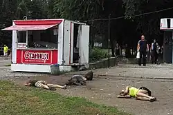 - ↑ В Луганске расстреляли машину, убили водителя и ранили пешеходов (фото) Архивная копия от 6 июля 2014 на Wayback Machine // Bigmir)net, 17.05.2014
