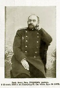 Никола́й Петро́вич Гундо́бин (30 ноября 1860, Шуя, Владимирская губерния — 15 сентября 1908, Санкт-Петербург) — потомственный дворянин в первом поколении, действительный статский советник. Один из первых российских детских врачей — основоположников петербургской педиатрической школы, доктор медицины, ординарный профессор кафедры детских болезней Императорской Военно-медицинской академии. Один из учредителей, а затем член совета Союза борьбы с детской смертностью в России[1]. Входил в число организаторов благотворительной организации для детей и кормящих матерей — «Капля молока»[2].