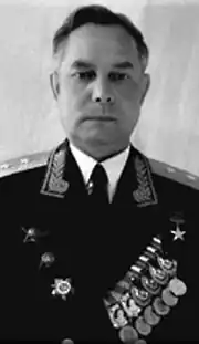 - Награждён двумя орденами Ленина (1950, 1962), четырьмя орденами Красного Знамени (1944, 04.01.1954, 05.11.1954, 1967 г.), орденом Отечественной войны 2-й степени (5.11.1943), двумя орденами Красной Звезды (30.03.1943, 1956) и медалями.