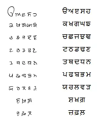 | ੳ | ਅ | ੲ | ਸ | ਹ |