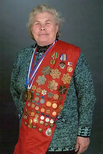 Завоевала три медали на чемпионате мира по лыжным видам спорта 1962 года в Закопане, в том числе, золотую медаль в эстафете 3х5 км. Шестикратная чемпионка СССР в 1960—1966 годах, двукратный серебряный призёр I зимней Спартакиады народов СССР (1962).