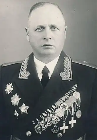 - ↑ Калашников К. А., Додонов И. Ю. Высший командный состав Вооружённых сил СССР в послевоенный период. Справочные материалы (1945—1975). Том 4. Командный состав Сухопутных войск (армейское и дивизионное звенья). Часть первая. — Усть-Каменогорск: «Медиа-Альянс», 2019. — 428 с. — ISBN 978-601-7887-31-5. — С.228.