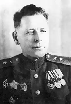 - ↑ Фото и текстовая информация о генералах и адмиралах Советского Союза, периода Великой Отечественной войны. Дата обращения: 26 августа 2016. Архивировано 14 октября 2016 года.