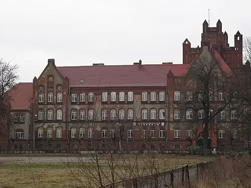 • Здание Гусевского агропромышленного колледжа, построенного в неоготическом стиле. 54°35′15″ с. ш. 22°12′12″ в. д.