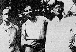 На фотографии изображены (слева направо) Хакимли, Гусейнзаде. Крайний справа по одним данным — Сеидов[78], по другим — брат партизанки Саввы[79]