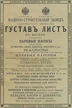 К 1897 году фирма была преобразована в акционерное общество чугунолитейного, механического и машиностроительного заводов, в правление которого Лист ввёл сыновей — Николая и Александра. В 1897—1898 годах за Бутырской заставой (Складочная улица, 6) был построен новейший по тем временам машиностроительный завод по проекту архитектора Николая Дмитриевича Струкова (с 1922 года — Компрессорный завод «Борец»). Предприятия Листа были многопрофильными; завод за Бутырской заставой выпускал полный спектр водопроводного оборудования, пожарные краны, вентиляторы, весы и гири и т. п. Лист имел право маркировать изделия государственным гербом за высокое качество продукции, представленной на Всероссийской промышленной выставке в Москве в 1882 году.