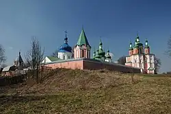 23 мая 1675 года Троицкая церковь была освящена архиепископом Черниговским Лазарем Барановичем. В 1670—1680 гг. монастырю всячески помогали и о нём заботились гетманы Иван Самойлович и Иван Мазепа, прилуцкий полковник Лазарь Горленко, а в 1690-х гг. его сын, также прилуцкий полковник Дмитрий Лазаревич Горленко. Монастырь украсился новыми монументальными сооружениями, обогащается новыми владениями. На средства полковника Дмитрия Горленко возвели высокие кирпичные стены вокруг монастыря, построили каменные надвратные церкви ― Николаевскую с запада и Петропавловскую с востока[3].
