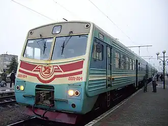 ![]() ![]() ДПЛ1-004 на станции Ковель. Сверху - вид со стороны тепловозной секции 2М62-1114Б, снизу — со стороны головного прицепного вагона | |