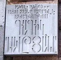 Мемориальная доска в Ереване, просп. Месропа Маштоца, 9.