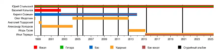 - Василий Копылов — вокал, тексты, музыка (1998—2002)