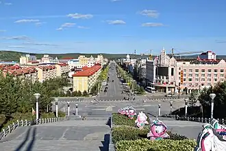 | 7 | Район | Джагдачи[3] | 加格达奇区 | Jiāgédáqí qū | 154 359 | 1400 | 110,25 |