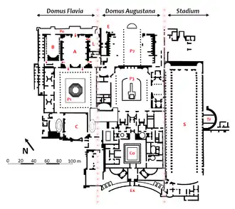 Построен при Домициане, в конце I в. н. э. В комплекс императорского дворца входили этот дворец, который использовался как личная резиденция императоров, и дворец Флавиев, в качестве официального здания.