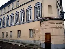 Ранее на этом месте стоял двухэтажный готический дом, построенный уже в конце XV века или в начале XVI века (предполагается, что на средства Винцентовича). Дом стоял концом к улице Доминиканской, боком — вдоль нынешней улицы Гаоно. В середине XVI века дом принадлежал Стрыйковскому [3] (по другим сведениям, — Стройновскому[4]). В 1603 году здание приобрёл Теодор Ляцкий и расширил его в южном и западном направлении, вдоль улиц. В 1649 году здание у Самуэля Ляцкого купила Академия и университет виленский общества Иисуса. В первой половине XVIII века был перестроен главный корпус и построен новый западный корпус. Академия и университет виленский сдавал в наём однокомнатные квартиры с кухней и кладовкой мелким ремесленникам. [3]