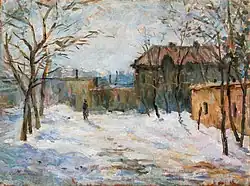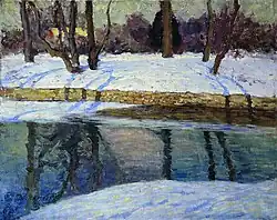 Писал художник разные времена года. Так, глядя на картину «Зима» (1892), зритель чувствует непосредственность и глубокое настроение автора. По заснеженной дороге едут сани, запряженные конём, в них сидит извозчик, кутаясь в кожух. Зимний день, морозный воздух, пронизанный холодным светом блеклого солнца. Вдали покрытые инеем деревья. Этюд написан акварелью прямо на бумаге, очевидно, прямо с натуры, в светлой цветной гамме, в лёгкой импрессионистской манере. Тонкие мазки прозрачной акварели еле чертят форму и как будто растворяются в мареве утренней зари и рассеянного солнечного света[6].
