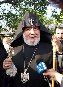 Поскольку Армения была христианизирована именно при Аршакуни, двуглавый орёл также используется, как символ патриаршей власти католикоса, при этом двуглавый орёл увенчан единой короной и имеет щит на груди, на котором изображён христианский крест.