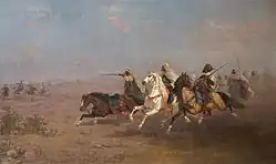 Из его произведений наиболее выделяются баталистические картины, особенно, «Бивуак в 1812 г.», «Конец сражения при Сольферино», «Мазепа», «Прощание французских солдат с их офицерами под Мецем 29 октября 1870 г.», «Раненый солдат» (акварель с гуашью) и др.