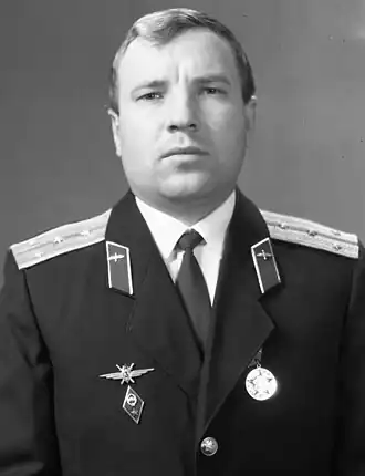 Анатолий Иванович Дедков (24 июля 1944, Лучин, Гомельская область — 16 сентября 2016, Московская область) — советский военный лётчик 1-го класса, космонавт-испытатель. Входил в группу космонавтов по программе «Спираль», был командиром дублирующего экипажа космического корабля по программе 1-й экспедиции посещения на станцию «Салют-6». Опыта полёта в космос не имел.