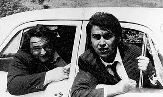 Сцена похищения Зейнаб Азизом. Жених Джафар (Эльдениз Расулов) и его отец (Самандар Рзаев) наблюдают за Азизом в машине