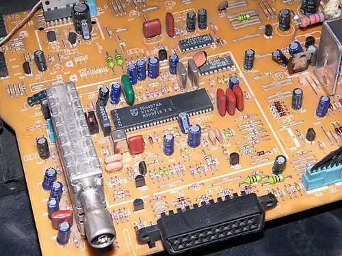 - Комбинированный декодер, содержащий общие для разных систем цветности узлы, с возможностью переключения режимов работы. Это наиболее прогрессивная схема декодирования, реализуемая в виде большой интегральной микросхемы (например, TDA4555 или её отечественного аналога К174ХА32 в телевизорах «Горизонт 51CTV-510»[34][35]), автоматически распознающей входную систему цветности, и переключающейся в нужный режим