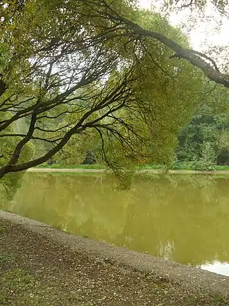 На восточном берегу высажены ивы необычного сорта — их ветки становятся жёлтыми к концам. Такие же ивы можно встретить и на левом берегу Красного ручья.
