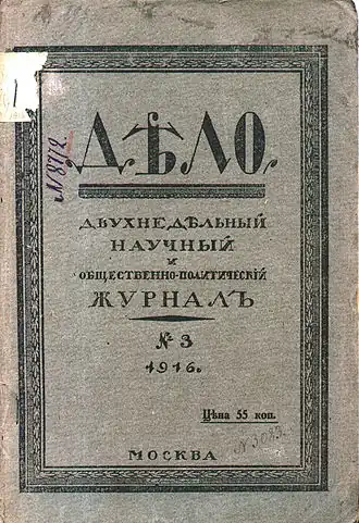 «Де́ло» (Дѣло) — двухнедельный научный и общественно-политический журнал меньшевиков-оборонцев. Издавался в Москве с августа 1916 года по январь 1917 года. под редакцией А. Н. Потресова, П. П. Маслова и Л. И. Аксельрод (Ортодокс). Инициатор издания — А. Н. Потресов. «Дело» продолжало закрытые ранее издания Потресова «Наша заря» и «Наше дело» (Санкт-Петербург). В 1916 году вышло 10 номеров (из них три двойных), в 1917 году — один номер. Журнал выражал взгляды патриотического крыла РСДРП. Идеологический тон в нём задавали статьи самих редакторов, освещавшие вопросы партийной стратегии и тактики, международной и внутренней политики. Политическое кредо издания выражено следующим образом: