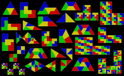 Некоторые делящиеся плитки основываются на полиформах, таких как полиамонды и полимино, или на фигурах, созданных соединением правильных треугольников и квадратов ребро-к-ребру.