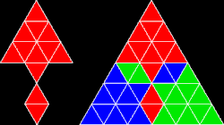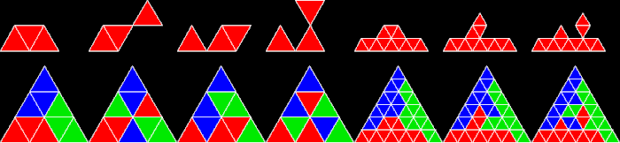Таким же образом, если полиамонд замощает правильный треугольник, он будет также делящейся плиткой.