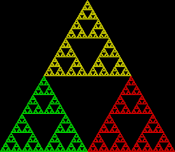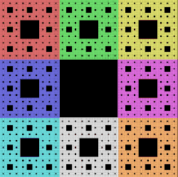 Поскольку фракталы являются самоподобными, многие из них являются также самозамощаемыми, а потому являются делящимися плитками. Например, Треугольник Серпинского является rep-3, замощённым тремя копиями себя, а ковёр Серпинского является rep-8, замощённым восемью копиями себя.