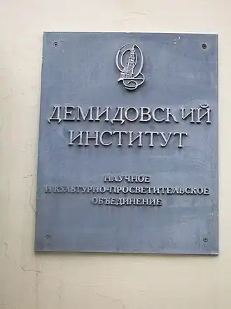 - ↑ Демидовский институт. Дата обращения: 24 июня 2022. Архивировано 23 июня 2022 года.