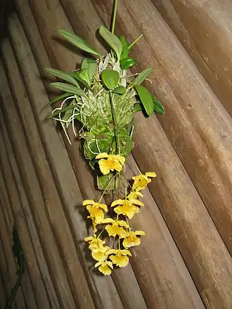 Посадка на блок или в корзинку для эпифитов с сосновой корой средней и крупной фракции. Субстрат не должен препятствовать движению воздуха.