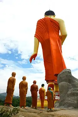 Шарипутра (санскр. शारिपुत्र, пали sāriputta, кит. 舍利子 Shèlìzǐ) (букв. «Сын Шари»), урождённый Упатисса (пали Upatissa), был одним из выдающихся последователей Будды[5]. Он считается первым из двух его главных учеников вместе с Маудгальяяной (пали Moggallāna)[6]. Шарипутра играл ключевую роль в миссионерской деятельности Будды и во многих буддийских школах считается важным деятелем в развитии Абхидхармы[7]. Он упоминается в нескольких сутрах Махаяны и иногда служит в них в качестве контрапункта для представления буддизма Хинаяны[8][9].