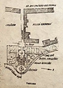 Детский сад (Вид сзади, левая часть фасада 2011 г.) Вид сзади, центральная часть (не фронтального) фасада 2011 г. Детский сад (Вид сзади, правая часть фасада 2011 г.)